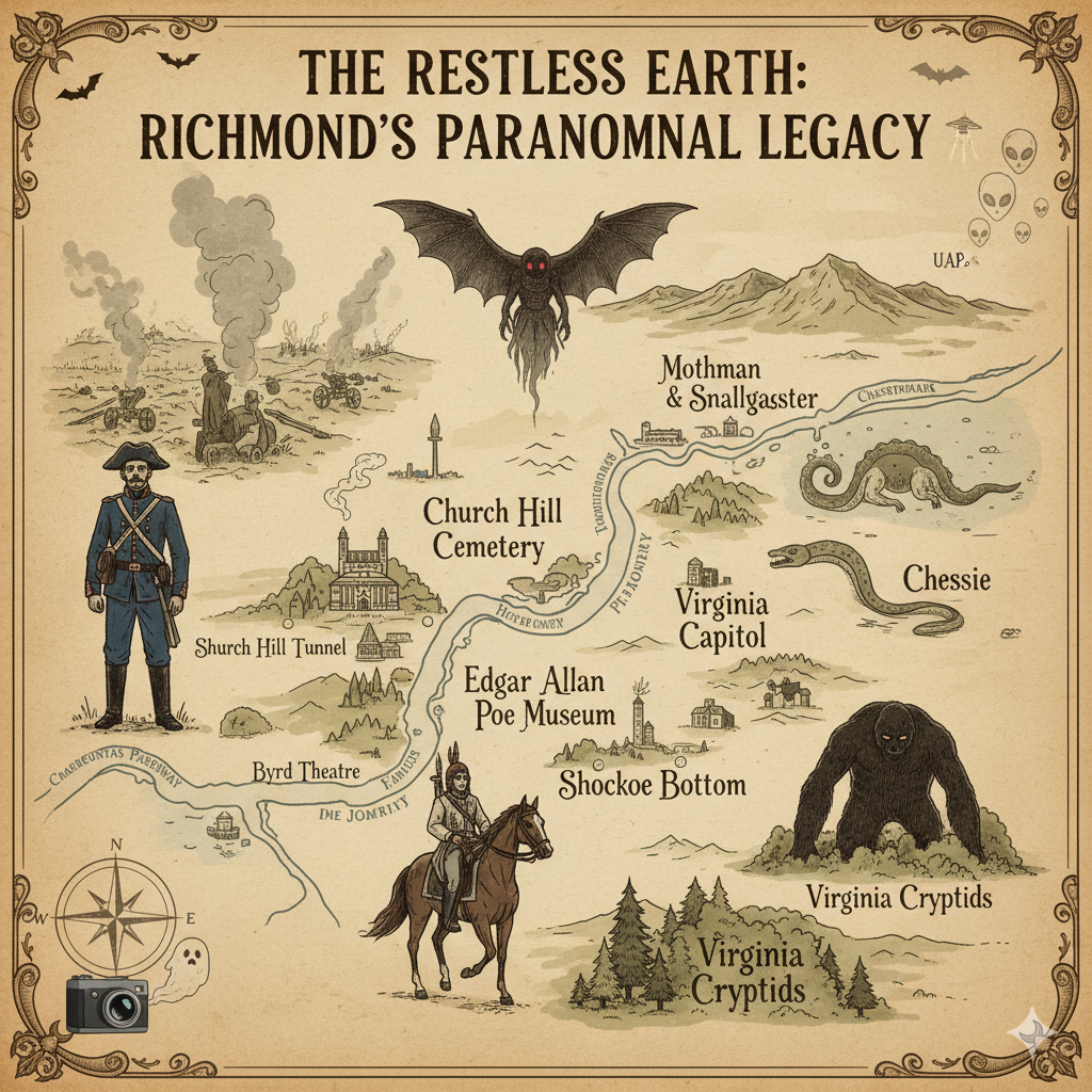 Ultimately, the paranormal history of Richmond, Virginia, is a rich and complex tapestry woven from its deep historical roots. The most profound and persistent paranormal activity in the region is directly tied to sites of large-scale, collective trauma. The echoes of the Civil War, the spiritual repercussions of disturbing Indigenous burial grounds, and the lingering energy of tragic civil events like the 1870 Capitol Building collapse are not random ghost stories but a living record of the city’s past. Each ghost, legend, and cryptid serves as a testament to the idea that the echoes of history are never truly silent. The city’s paranormal landscape is a constant reminder that the past, in its most compelling and mysterious forms, continues to live in the present.